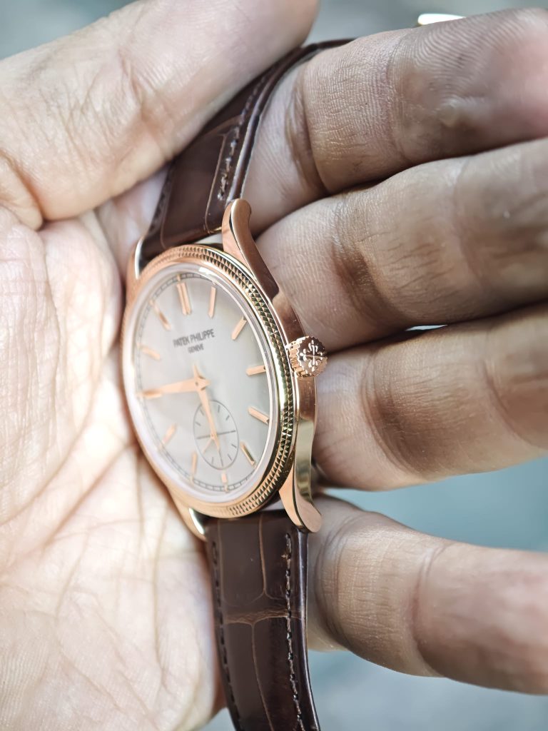 Bezel: Patek Philippe’in imzası haline gelen “Clous de Paris” (Giyotin desenli) tırtıklı bezeli ile dikkat çeker.